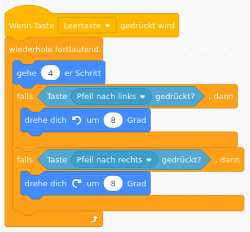 - sich linksrum dreht, falls die Pfeiltaste nach links gedrückt ist und sich rechtsrum dreht, falls die Pfeiltaste nach rechts gedrückt ist.